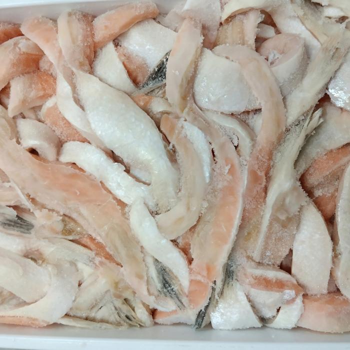 Брюшки лосося мороженые пласта 10 кг, размер 1 см в ширину и более.